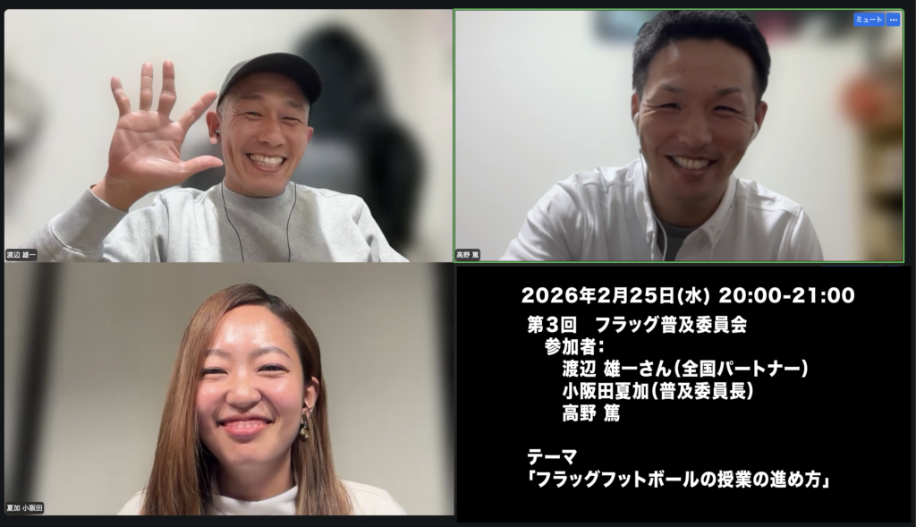 フラッグフットボールがオリンピック種目となる時代において、競技力向上と同時に「質の高い入口」を全国へ届けることが不可欠だと考える渡辺さん。その活動は、個人の情熱に依存しない再現可能な普及モデルの構築へと進化している。未来の選手を育てる前に、まず未来のファンを育てること。その信念のもと、今日も学校現場に立ち続けている。
